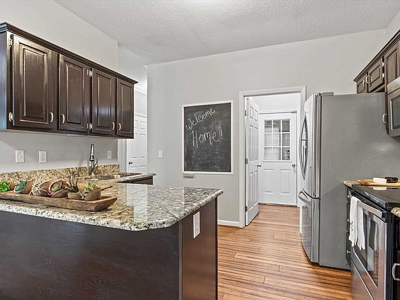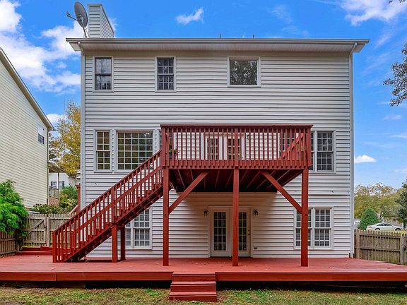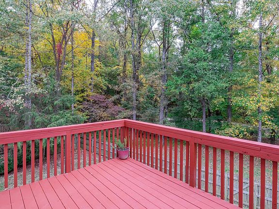 Hard to find, L-shaped front load garage & front door with custom canopy. Fenced yard, double decks with a babbling brook working it's way through the back. Finished daylight basement could be large 4th main bedroom or separate private suite. All back views are of the lushly wooded Durant Trail with easy on/off access! Bamboo flooring, custom cabinetry, granite countertops, tons of storage, upstairs a/c replaced in 2020, downstairs replaced in 2019, new carpet & paint 2019, whole house water filtration system, central vac, tankless water heater. Pool, tennis courts & playground one block away. Upstairs hall bathroom needs finish work, priced accordingly.