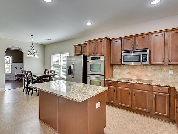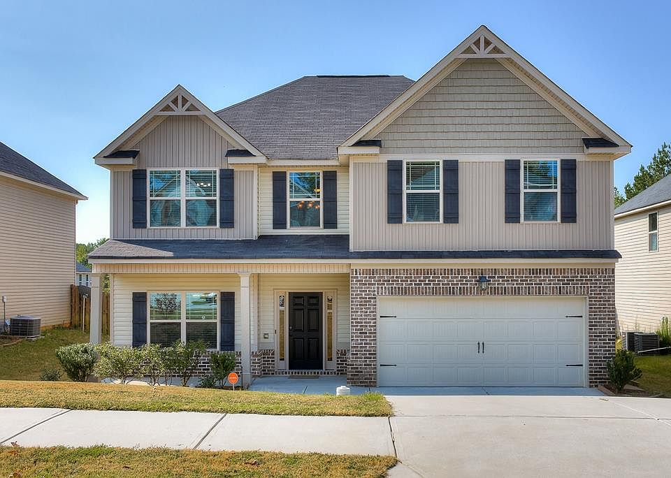 Lovely home in a great location! 5 bedroom, 3 full bathrooms, and this house has LOTS of upgrades, such as a gorgeous chef's kitchen with double ovens and large island, hardwood floors and coffered ceiling in the formal dining room, and a huge owner's suite with vaulted ceiling! Beautiful 2-story foyer leads to the open-concept great room and amazing kitchen with breakfast area, pantry, lots of cabinet and counter space, recessed lighting, and stainless steel appliances. One bedroom and full bathroom are downstairs, and 4 more bedrooms and 2 full bathrooms, including the owner's suite are upstairs. Owner suite includes private bath with dual-sink vanity and garden tub! Lots of walk-in closet space throughout the home! Enjoy the outdoors with covered back patio and large fenced backyard with greenspace behind! Neighborhood features sidewalks, pool, and clubhouse. Great Columbia County schools and lots of shopping nearby, plus good commute to Fort Gordon, I-20, and other areas!