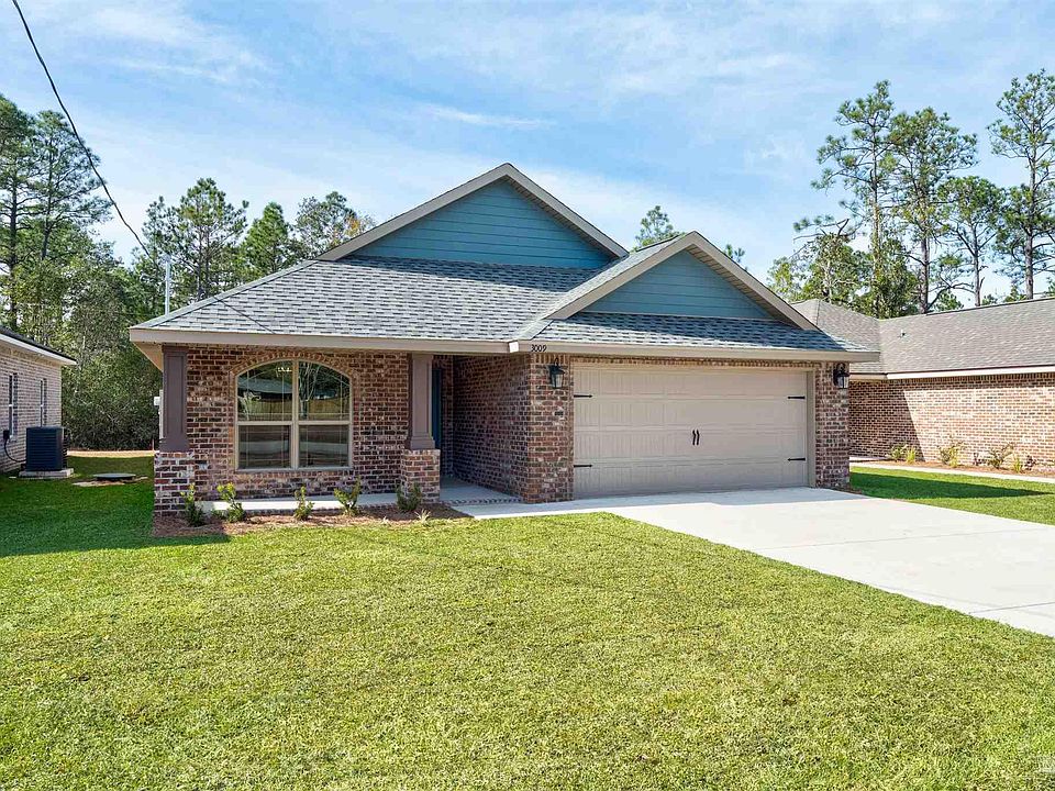 SELLER OFFERING $5,000 TOWARDS CLOSING COSTS! Brand New, Never Occupied--Built in Nov 2023! This home brings together tasteful design elements & finishes that you'll love! Convenient location in the Avalon community; provides easy access to Milton & Pace with Pensacola just minutes away. The home is beautiful, all brick, with simple but sharp curb appeal that's easy to maintain. The fully-tiled kitchen, dining & living areas have a modern open floor plan with a tray ceiling that adds real up-scale elegance. The kitchen offers beautiful granite counters, all wood cabinets, with plenty of soft-close storage space. A suite of Whirlpool top-line appliances, includes Stove w/Double Oven, Dishwasher, Microwave (Refrigerator also negotiable). The dining area adjoins the kitchen and is accented with a bright arched picture window. The owner's suite also boasts a classy tray ceiling for added elegance. Owner adjoining bathroom includes a beautiful vanity space with dual sinks, a walk-in shower, separate large soaking tub, private water closet, and two separate walk-in closets for plenty of space. The two additional guest/children's rooms offer ample space for full bedroom sets. Guest bathroom includes a beautiful vanity with granite counter. Separate laundry room with additional storage cabinetry is a plus. The backyard has plenty of room for play & the cozy covered patio with ceiling fan, is a perfect place to BBQ or unwind!