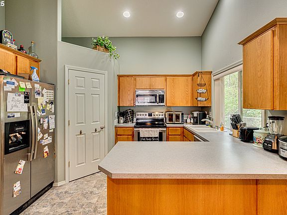 Discover this stunning single-level ranch in Parkview Trails! Nestled on a quiet cul-de-sac and backing to serene wetlands, this home offers ultimate privacy and peaceful living. Featuring 3 spacious bedrooms, 2 full baths, and central air, it’s designed for comfort and convenience.The primary bedroom boasts an ensuite with a walk-in shower, while the hallway laundry closet adds functional ease. Enjoy outdoor living with a 21x7 covered patio, a private partially fenced yard, and a 12x10 shed—perfect for entertaining or relaxing in nature.Peace of mind comes standard with a new 50-year roof (just 3 years old), leaf guard gutters, and a transferable warranty. The home also includes a hardwired security system, currently offline but ready to connect to the internet if desired.The kitchen features a pantry for extra storage, and while garage storage units are excluded, there’s still plenty of space for organization.Located just minutes from Downtown Battle Ground, local parks, shopping, and dining, this home perfectly blends small-town charm with modern living. Don’t miss the opportunity to own this move-in ready ranch in one of Battle Ground’s most desirable neighborhoods!