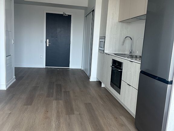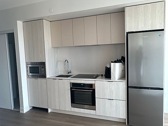 Modern 1+Den Condo with city Views in Mississauga City Centre Experience urban living at its best in this brand-new, spacious 1-bedroom + den condo just steps from Square One Shopping Centre. Offering over 600 sq. of living space, facing a balcony, this suite boasts unobstructed city views and abundant natural light throughout.Features include a designer kitchen with rich wood-grain cabinetry, soft-close hardware, and track lighting, plus a modern 3-piece bathroom with quartz counter-tops and porcelain flooring. The versatile den can serve as a home office or second bedroom.Residents enjoy premium amenities such as a fitness centre & yoga studio, rooftop patio with BBQ area, party room, 24-hour concierge, and more. Conveniently located near transit, parks, restaurants, shops, and schools.*5 mins to Cooksville Library*13 mins to Cooksville GO Station 15-20 mins direct bus to UTM or Sheridan College No transfers required Perfect for professionals, students, or newcomers seeking comfort and convenience.Note: No parking included. Parking available at additional cost.