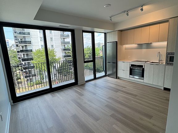 Beautiful 1 bedroom condo with a balcony! Features sleek laminate flooring throughout and a thoughtfully designed open-concept layout. The bright living space extends to a private balcony perfect for relaxing or enjoying your morning coffee.The contemporary kitchen comes equipped with a full-sized fridge, stove, and ample cabinetry. Enjoy the convenience of in-suite laundry and a spacious bedroom with large windows that bring in plenty of natural light. Located in a brand-new building, residents enjoy a range of premium amenities including a fully equipped gym, a vibrant party room, and a fun-filled games room. Situated just minutes from Square One Shopping Centre, you'll have shopping, dining, and entertainment right at your doorstep. Quick access to major highways and close proximity to the hospital make commuting and daily errands effortless. 30 mins with GO to Union Station, 15 mins to Pearson Airport. Tenant responsible for utilities