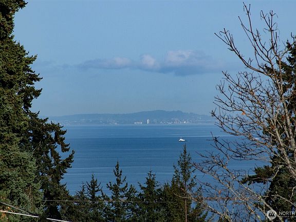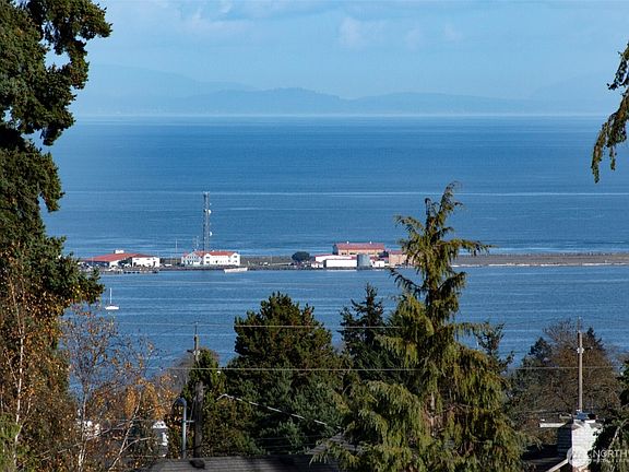 Watch the ships pass by in the Strait from the large picture windows of this classic 3 Bed, 1.5 Bath Home on a half-acre lot. Quality-built and full of charm, this home features fireplaces in both the living room and dining room, a bright kitchen with a breakfast bar, double-sided cabinets, a glass cooktop, wall oven, and pantry. The main bath offers dual sinks in the bathroom, with a skylight, and tub/shower combo, while the primary suite includes its own half bath. Enjoy the laundry room featuring a utility sink and extra storage and stacked washer/dryer. The spacious 2-car garage includes a workbench, plus additional paved parking alongside. Relax on the private backyard patio surrounded by mature trees.