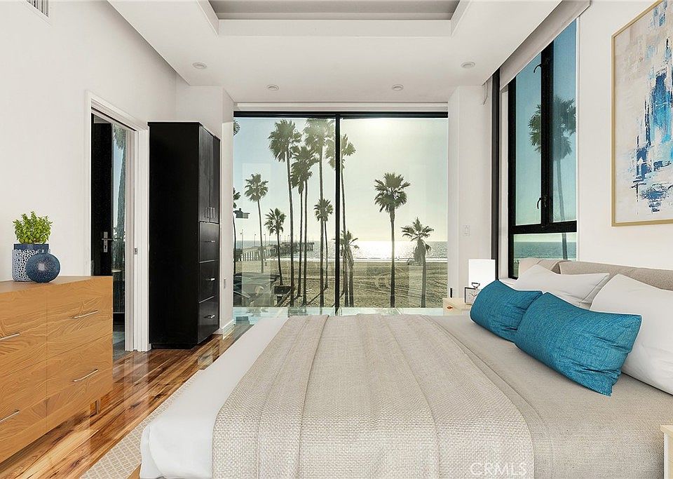 Oceanfront townhouse in the most desirable part of Venice Beach! Wake up to the breathtaking views of the Pacific Ocean from the Santa Monica Mountains all the way to the Marina Coast! This beautifully modern built multi-level townhouse on the beach is the ideal home for those seeking a respite from the complications of day-to-day life in Los Angeles, yet easily accessible from the rest of the city. Large living room with views of the ocean and adjacent kitchen equipped with built-in appliances, such as Miele coffee maker, microwave oven, stove/oven combo and multiple wine coolers which create a welcoming space for you and your guests. White Italian marble floors in the living room, guest bedroom and kitchen with a large balcony facing the ocean on the first floor and the second floor consists of the beach facing master bedroom/bathroom with its own oceanfront balcony along with a 3rd bedroom with side views of the beach. Master bathroom is large a hot tub and steam bath facing the ocean. There are magnificent views of the beach from every corner of this beautifully designed townhouse. Shared roof deck on the top floor provides 360 degree views of the ocean and city. Unit is located in a two unit complex and has exclusive access to one garage parking space and a shared guest parking space. Laundry facilities are located on the first floor next to the garage.