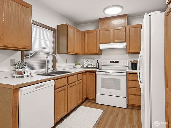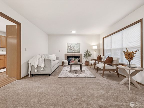 Fantastic opportunity! This updated two-story home features fresh interior paint, new vinyl flooring, and new carpet throughout. Offering 3 bedrooms and 1.5 baths, the home includes a spacious living room with a cozy gas fireplace that opens to the dining area. The kitchen offers classic oak cabinetry, new vinyl flooring, and newer appliances. Enjoy an attached garage, a fully fenced backyard with a patio, and convenient RV parking. Located within walking distance of parks, schools, and downtown Enumclaw! Plus—take in the beautiful view of Mt. Rainier! Homes in this location and conditions don’t last long-schedule your showing today and make it yours!