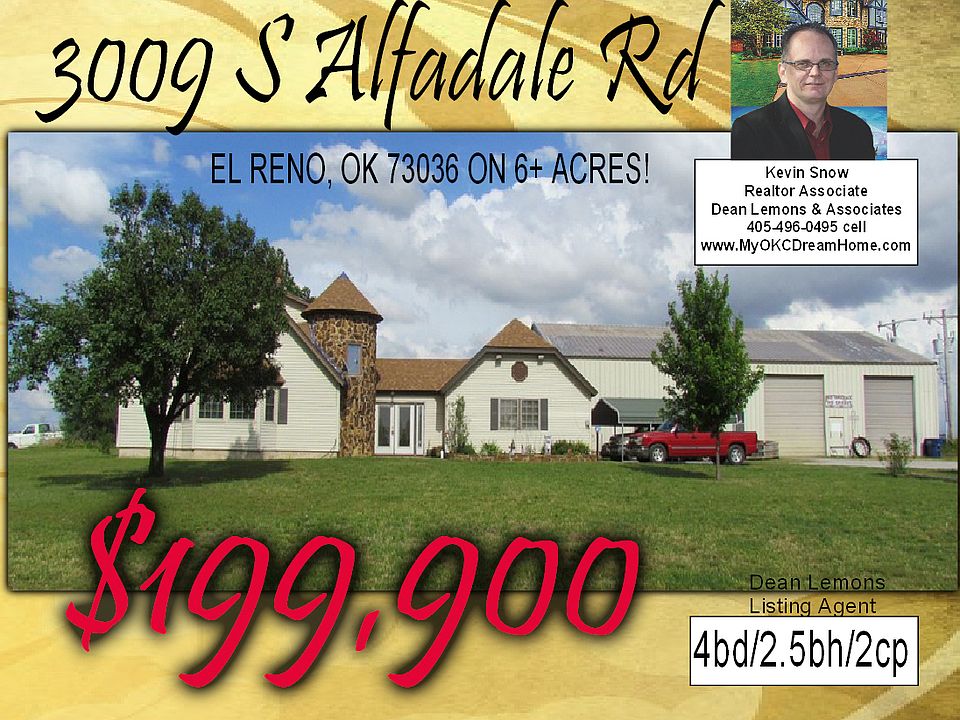 One Of A Kind Property Situated On 6.22 Acres! Between I-40 & US 66 Just East Of El Reno. Large Commercial Shop Building 45 X 81 (3,685 sq ft)! Cross Fenced For Horses/Cattle, etc. Active Creek, House Has Unique Floor Plan. 3 HVAC Zones. Must See To Appreciate, House Needs Some TLC... Exact Footage Unknown To Realtor & Seller, Buyer To Verify. CALL KEVIN SNOW TODAY FOR YOUR PRIVATE SHOWING AND TO MAKE YOUR OFFER AT 4054960495!
