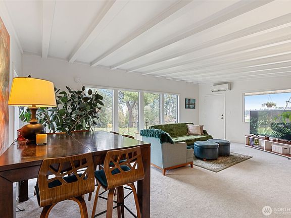 Mid-century gem meets charming one-level living in this inviting home! Enjoy a view of the Strait & Mount Baker from the generous floor-to-ceiling windows that fill the home w/tons of natural light.Designed with comfort & functionality in mind, this home features three bedrooms, and large bonus room offering flexible room options.The eat-in kitchen offers a warm, welcoming space.The large yard boasts room to garden, play, or relax.Brand new roof, new carpets and new water heater provide peace of mind. Spacious storage room. Ductless mini-split for A/C comfort & efficiency.Situated in a prime location in a desirable “Up the Hill” neighborhood, close to schools, parks, and in-town amenities making it an ideal blend of convenience & serenity.