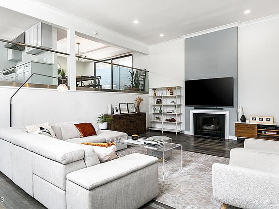 The 2017 renovation of this split level home celebrates inspiring modern design, neutral finishes and a comfortable floor plan in the highly desirable Oakmont neighborhood. This three bedroom en-suite home is remodeled with stunning attention to detail. The beautiful living room features a fireplace, elevated ceilings, wet bar and mountain views. Steps up to the designer kitchen features top-of-the-line Thermador appliances, custom cabinetry and Cambria quartz island with counter seating. Beyond the kitchen is the dining room with access to the backyard patio. The main level features one bedroom suite with 3/4 bathroom, spacious enough for a guest bedroom and work-from-home option. The upper level boasts golf course views and two additional bedroom suites, including the primary suite with a luxurious bathroom with soaking tub, separate shower, dual vanity and closets. A full laundry room and two car attached garage complete this home. Additional amenities include: engineered wood floors, copper plumbing, electrical, newer HVAC and recessed lights.