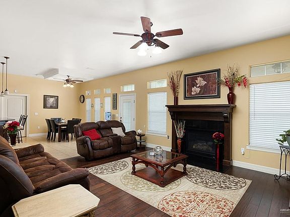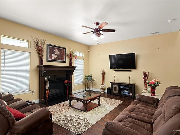 Beautiful country modern home located in Weslaco, TX. Come take a look at this spacious 5 bedroom 4.5 bath home. This home features gorgeous hardwood flooring throughout, a cozy fireplace for those winter months and granite countertops. Your master bedroom is conveniently located downstairs tied complete with a huge walk in closet and bathroom suite. Master bathroom includes two vanities a garden tub and standup shower. Next to your master bedroom is a guest bedroom and full bath. Upstairs are 3 separate bedrooms two of which share a jack and Jill bathroom and the other has its own. The garage is spacious enough for three vehicles and includes the half bath convenient for guests. Relax in your back porch which overlooks the property's beautiful acreage. Home comes complete with a security system, water softener, solar screens and propane tank. All appliances are included in sale. Schedule a showing today!