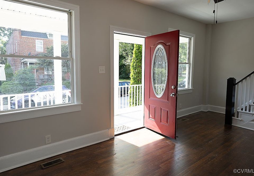 Three years of partial tax abatement left on this 1924 north side beauty! Located on a corner lot in the Highland Terrace neighborhood, this charming 3 bedroom, one and a half bath house features hardwood flooring throughout, energy-efficient windows, dual zone heat pumps, washer/dryer hookups in laundry closet, shaker-style kitchen cabinets and granite countertops, stainless appliances (including a brand new fridge) and ceramic tile flooring in the kitchens and baths. Located steps from Brookland Park Boulevard, right across from Hotchkiss Park and its pickleball & basketball courts, playground and public pool. Just down the street from restaurants, a coffee shop, bakery, bookstore, ScrapRVA, nationally renowned Ruby Scoops ice cream, public library and so much more (including the Brandery coworking space opening above Smoky Mug this summer). Easily bikeable to downtown and VCU, convenient to the Cannon Creek Greenway. On the busline also (still free)! Plantings in the yard include two varieties of grapes, raspberries, blackberries and a bay tree. Come fall in love with North Side; you can see it from your front door.