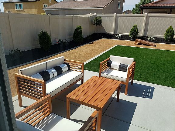 Smart home in Menifee Built 2019 with many upgrades Focal rock wall, cathedral ceiling with beams, granite counter tops and smart home features Shows like a model home 5 bed 3 full bath 2 car garage Huge loft Master downstairs Beautiful Backyard with mountain view complete low maintenance with artificial grass and putting green Large enough yard for a pool Extended driveway for additional parking Leased solar Whole house fan This home has it all! Including 1 year new refrigerator and washer and dryer!