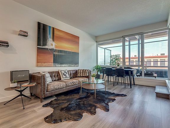 Stylish Two Bedroom Condo in the Heart of the City (w/extended patio) Welcome to modern urban living in this thoughtfully designed 2-bedroom, 2 bathroom condo, perfectly situated in the vibrant and walkable Hillhurst neighborhood, locally know as Kensignton. Offering downtown views, this unit is ideal for those seeking a stylish, maintenance-free lifestyle in one of Calgary's most desirable areas. Discover an open-concept layout, with high end finishings and 9 foot ceilings. The contemporary kitchen boasts flat-panel cabinets, quartz countertops, stainless steel appliances, a gas cooktop, under-cabinet lighting, and a built-in wine rack. The breakfast bar seating makes casual dining and entertaining a breeze, while the adjacent, and designated dining, and living areas provide ample space for all. The bedroom is downtown oasis retreat with a wall of windows, filling the space with natural light. A modern walkthrough closet leads to a spa-inspired cheater-ensuite. Relax in the soaker tub or enjoy the glass-enclosed shower and floating vanity with under-cabinet lighting. Additional storage and convenience are provided by the spacious in-suite laundry room. The private balcony double balcony is 60 square feet and one of only two in the whole building, allowing one to soak in the stunning views of downtown and the Kensington streetscape complete with fire pit for those chilly Calgary nights. The unit includes one titled underground parking stall, an assigned storage locker, and access to a car wash in the parkade. Located just steps from boutique shops, cafes, restaurants, gyms, and entertainment, this condo offers unparalleled convenience. The Bow River pathways and C-Train station are a short walk away, providing easy access to outdoor adventures and downtown. This condo does consider pets, and is perfect for professionals, downsizers, or anyone looking for a sophisticated home in a lively, amenity-rich neighbourhood. Owner pays for Enmax and Telus high speed wifi.