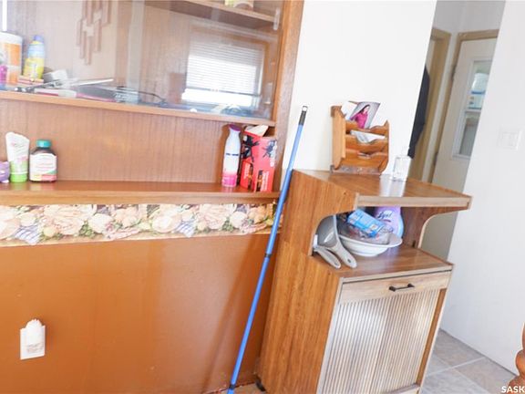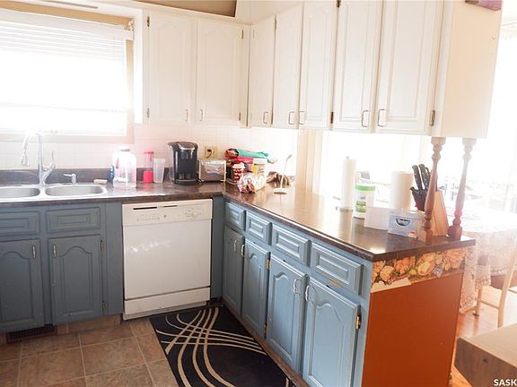 Located in the Town of Rockglen, this home is situated on the side of a hill. It features two bedrooms, a spacious living room, dining area, kitchen, and main floor laundry. The basement is developed and includes a family room, a three-piece bathroom, a den that was previously used as a bedroom, and additional storage space. There is a beautiful view of the hills from the front of the house. The property has a single attached garage for storage needs, along with an older garage located at the top of the hill.