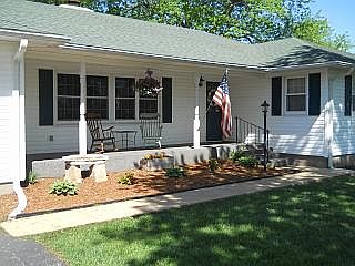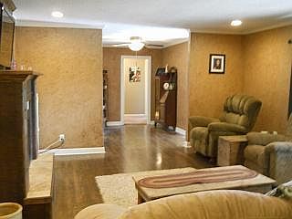 Attractive 3 bedroom home in town on a lovely, park-like lot. The spacious 15x22 living room has a wood-burning fireplace with insert. The 12x13 dining room has a bay window, overlooking the patio. Both rooms have hardwood floors. 12x19 kitchen, featuring oak cabinets, bar, and stainless steel appliances. Large master bedroom with his 'n hers walk-in closets and half bath. 7x26 covered front porch. Attached 2 car garage. Security system. Storm shelter. 8x16 and 12x16 metal storage sheds