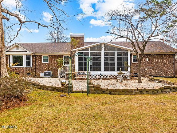 Looking for privacy in a location convenient to New Bern and Cherry Point? Unique property of almost 5 acres which includes large scenic pond is located approximately 5 miles from drawbridge leading to New Bern's historic district. 1980's brick ranch with two car attached garage has been updated with laminate flooring in living areas and Master Bedroom, granite countertops in kitchen. Master Bath has a newer shower installation. Electric heat pump was replaced in 2020. Roof was replaced in 2019. An Easy Breeze porch was added by the owner and that space is not included in finished square footage. All existing appliances convey. The home is served by a Step System for Sewer and has Craven County water. The property consists of two parcels both of which convey. Some settling has occurred to the home since it was built. This home is in a beautiful natural setting and you don't want to miss the chance to see it for yourself.