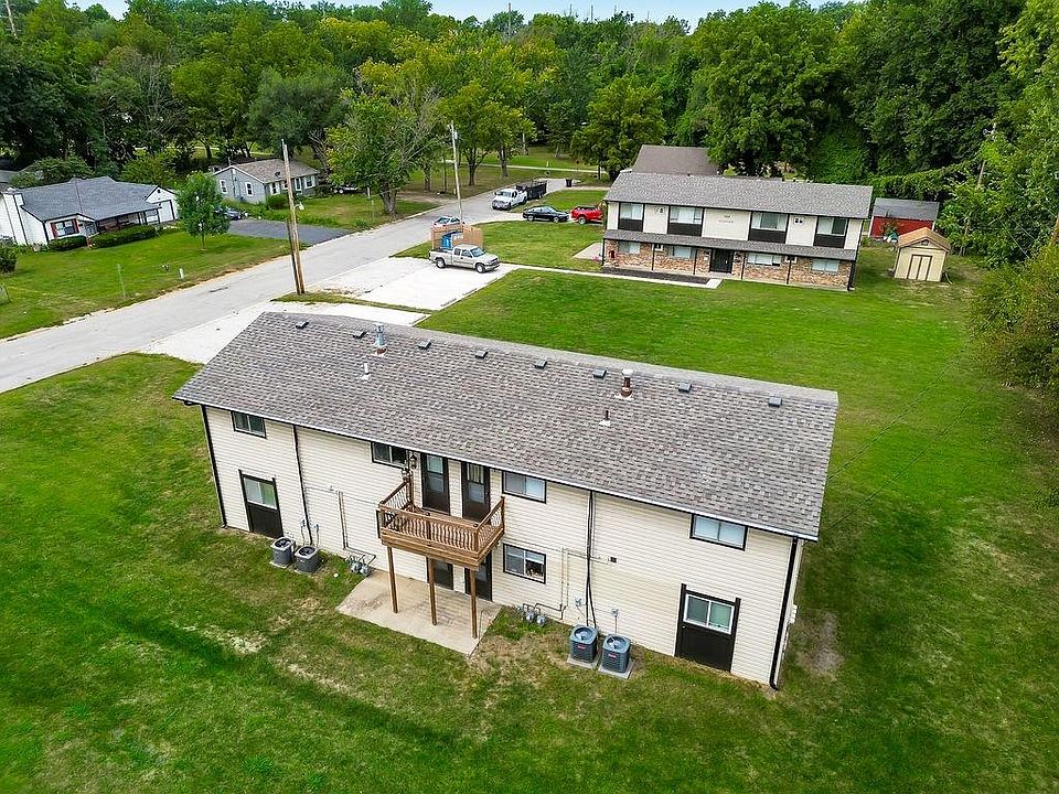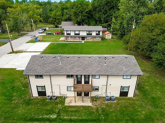TWO fourplexes, with eight 2-bedroom, 1-bath units, sharing a large common area with parking, selling together as a package in the heart of Bonner Springs. Very well maintained, both with brand new roofs in September 2025. Updates include new carpet, interior/exterior paint, LVP flooring, and mechanicals. The lower units have washer/dryer hookups. Great investment opportunity with a potential gross income of $8,000 a month. Wonderful location, just 5 minutes to 1-70 and 10 minutes to KC Legends, located off a dead-end road.