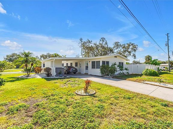 Beautiful remodeled home in Belle Vista, just Steps away from St. Pete Beach Live the beach lifestyle in this beautifully updated 3-bedroom, 2-bath block home, ideally located in the peaceful Belle Vista neighborhood. Situated on a spacious corner lot, the home welcomes you with a circular driveway and charming curb appeal. Park under the covered carport and step into a bright, open-concept living space featuring luxury vinyl plank flooring and abundant natural light. The kitchen is perfect for entertaining, with a peninsula offering bar seating, ample counter space, and generous storage. A nearby hallway leads to a convenient laundry closet and a modernized guest bathroom. All three bedrooms, including a private primary suite, include built-in closets. Open the sliding glass doors to a screened lanai with a covered lounge area and a newer hot tub (installed in 2019), all overlooking backyard oasis with a brand new fence. Enjoy the landscaped yard with multiple fruit trees, fresh exterior paint, and plenty of space to relax or entertain. Additional highlights include a large storage shed, a carport closet for extra storage, a whole-house generator (2020), newer HVAC system (2018), impact windows, a 7 stage osmosis water filter, and a tankless water heater for energy efficiency and peace of mind.