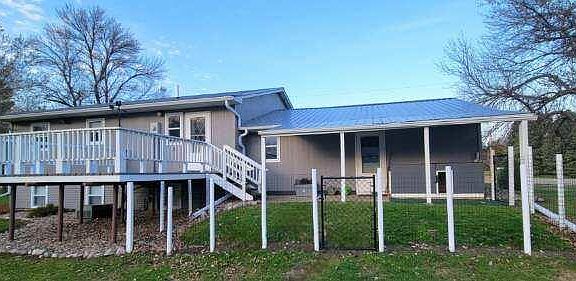 Nice small town setup with split-level home, 2 stall attached heated garage and a detached 24x45 shop -- all located in the town of Claremont. Lots of square footage inside, one bedroom up and two down, breezeway between garage and home features laundry and utility! Home features a large kitchen, newer fridge with gas stove and walk out access to deck. There is a covered canopy with a fenced dog condominium located inside the spacious backyard. Lots to love!