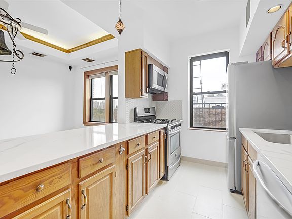 Welcome to your dream home in the heart of a vibrant community, where sweeping views of the New York City skyline and desirable amenities combine to create an exceptional living experience. This exquisite top-floor 2-Bedroom, 1-Bathroom condo offers nearly 1,000 square feet of thoughtfully designed living space, blending timeless charm with modern sophistication. Enjoy the luxury of central air conditioning, soaring ceilings, and an open-concept layout that maximizes natural light and creates a spacious, airy ambiance. The renovated kitchen features sleek SS appliances, ample cabinetry, and generous counter space perfect for both everyday living and entertaining. Both bedrooms are generously sized, providing quiet, cozy retreats, while the stylish full bathroom offers functionality and contemporary finishes. Set in a well-maintained elevator building, this rare top-floor residence enjoys a prime location next to the magnificent James J. Braddock Park, offering access to scenic paths, picnic areas, tennis courts, basketball courts, and more. Whether you seek relaxation or recreation, it’s all just moments from your front door. You will also love the convenience of nearby restaurants, shops, and cultural attractions, along with easy access to public transportation for a seamless commute to NYC and beyond.