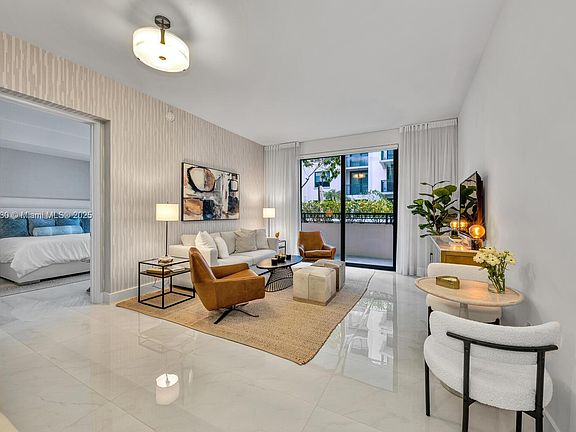 Beautiful fully furnished 2-bedroom, 2-bath condo in the heart of Coral Gables featuring a desirable split floor plan, impact windows and doors, Italkraft cabinetry, quartz countertops, Bosch appliances, Nest thermostat, and keyless entry. Includes a laundry room with washer and dryer and a large private patio on the pool deck floor—ideal for relaxing or entertaining. Enjoy resort-style amenities: heated saline pool, summer kitchen, fitness center, 24-hour concierge, security, and valet service. Steps from Merrick Park, fine dining, and boutique shopping. Includes two assigned parking spaces. Schedule your private showing today!