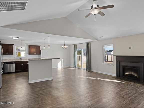 Discover the epitome of comfortable living in this charming single-story (plus FROG) residence located in the coveted Peyton's Ridge community, offering both proximity to Camp Lejeune military base and the sun-soaked shores of Emerald Isle beaches. This thoughtfully designed home boasts a desirable single-story layout for effortless living. Additionally, a versatile bonus room provides ample space for a home office, media room, or play area—tailored to suit your lifestyle. Step into this beautifully designed home featuring an open concept layout, seamlessly merging the living room, kitchen, and dining area. Large windows illuminate the space with natural light, creating an inviting ambiance for everyday living and entertaining. Enjoy the luxury of a large fenced yard, providing privacy and a secure space for outdoor activities, family gatherings, or your furry companions to roam freely. Peyton's Ridge is renowned for its family-friendly community and fosters a vibrant neighborhood feel. This home presents an exceptional opportunity to experience comfortable living in a prime location that combines the tranquility of Peyton's Ridge with the allure of coastal living. Embrace the convenience, charm, and accessibility this property offers.