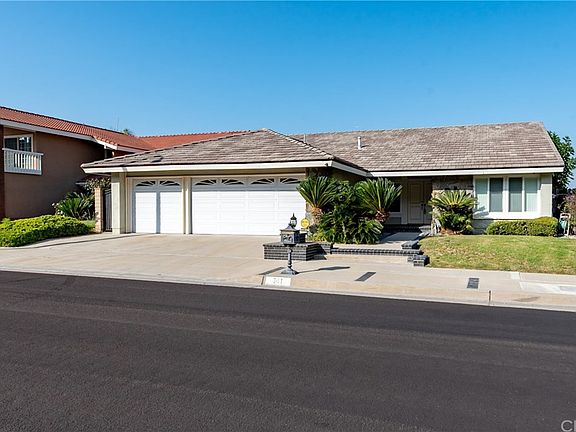 A special combination of desirable location,well lit & open floor plan, amazing views and single level convenience,makes this house a truly desirable Home to move into.Upon entry,vaulted ceilings delightfully greet you,complemented by cream color carpeting extending from the living to the formal dining area.Proceed to the kitchen and soak in the beautiful private view. A separate family room anchored by a fireplace w/ brick accents and a bar area offers open seating for family gatherings.Full sized, newer double pane windows and glass sliding doors throughout allows for natural light to come in. Step out into the backyard & appreciate a private and open space to enjoy hillside views, city lights and occasional fireworks.The hallway takes you to well spaced bedrooms and newly renovated bathrooms. Inside laundry area can be found leading into the spacious 3 car garage with dry walled walls.Newly painted interior walls and cleaned air ducts ensures freshness throughout the entire home. An Executive Single level Home on a single loaded, newly paved street, lovingly maintained in the County Hills East neighborhood is sure to behold.Ideally located between LA & Orange County, surrounded by popular shopping & dining establishments. Exclusive, Private & Definitely,A Peaceful Neighborhood. Make it your next home address!