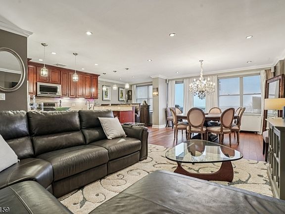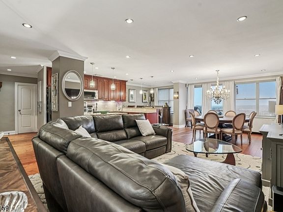Discover luxury, comfort, style, and convenience in this beautifully appointed penthouse 2-bedroom, 2-bathroom condo with higher ceilings with recessed lighting at the coveted Executive House in Hackensack. Perfectly situated in the heart of Hackensack, this sun-drenched residence features a spacious open layout with walls of windows, flooding the home with natural light and offering stunning views, including glimpses of NYC, from your private terrace, often including rainbows. The modern kitchen is equipped with stainless steel appliances, granite countertops and abundant cabinet space ideal for both everyday living and entertaining, plus a breakfast island and/or bar area. Both bedrooms offer generous proportions, and the bathrooms are tastefully updated with contemporary finishes; one bedroom includes a unique washer/dryer for your convenience. Enjoy resort-style amenities in a serene, park-like setting spanning 3.7 acres. The Executive House offers; 24-hour concierge & doorman service, secure package handling, as well as in ground swimming pool, private park, on-site building management and storage unit; 1 outside parking space ($) & overnight guest parking. HOA includes heat, electric and water, dramatically reducing your utility costs. Centrally located just minutes from NYC trains, major highways, shopping, and NYC-bus on corner, this is luxury, lifestyle, and location all in one. A deeded one-car parking spot in the garage is also available for separate purchase.