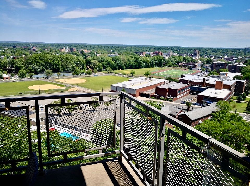 Top floor penthouse-like apartment. Incredible view. Spacious balcony. All-included utilities. One parking spot for car. Hardwood floors. Open space plan for kitchen, dining, and living room. Laundry in building lower level. Lovely walk-in closet. NO FEE TO TENANT. Much more awaits! Lease begins on March 1st, 2025 (or half-month later). One-year OR two-year lease.
