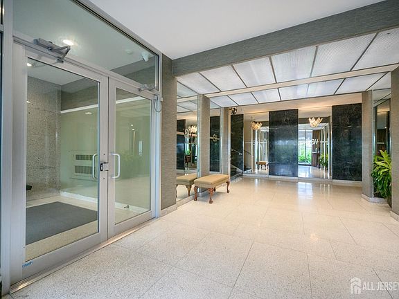 Executive House in bustling Hackensack premieres this beautiful 2 Bed 2 Bath Condo with Master Suite and private deck, sure to impress! Well maintained with plenty of modern upgrades in a prime commuter location, just pack your bags and move right in. This fourth floor unit offers an open layout for seamless living and entertaining, with generous room sizes, hardwood floors that shine, plenty of natural light all through, and a crisp cooling palette that is easy to customize. Gorgeous eat-in-kitchen offers sleek SS appliances, upgraded quartz counters, ample cabinet storage, delightful breakfast bar, and opens to the lovely dining area. Spacious living room holds sliders to your own private deck, great for al fresco dining or enjoying your morning coffee. Down the hall, the main full bath, along with 2 generous bedrooms with ample closets, inc the Master Suite. MBR boasts its own full ensuite bath with stall shower and walk-in closet. Addtl features inc elevator access, a luxe lobby with 24 hr doorman, conference room with kitchen facilities, an outdoor pool, and shared laundry room in the basement. HOA fee covers all utilities, an owned outdoor space, pool, and separate lockable storage bin. All conveniently located to shopping, dining, parks, schools, Hackensack Meridian hospital, major roads, the the bus line for an easy commute. This is an excellent opportunity for the first time buyer, or a great rental unit to add to your portfolio. Don't miss out! *Coming Soon - Showings begin Friday 10/3*