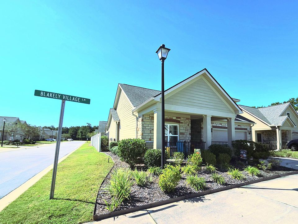 Beautifully designed 1-story patio home that blends comfort, convenience, & style. Inside you'll find plantation shutters, custom built-in shelves surrounding fireplace & custom alcove built in hallway adding extra character & function, deep tub in guest bath, tons of storage throughout, Flex room which can be an office, den, 3rd guest bedroom, & screened porch off Primary bedroom. Home security system & sealed epoxy garage floor for a polished finish. Enjoy a low-maintenance lifestyle with HOA-covered exterior insurance & lawn care outside your private fenced courtyard. The sought-after neighborhood offers desirable amenities including a clubhouse with full kitchen, library, game rooms, private gym, and a pool with outdoor grill -- all just minutes from shops and dining!