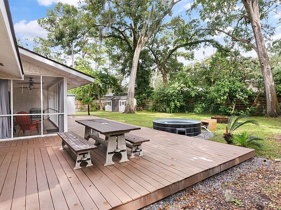Escape to this charming 3-bedroom, 2-bathroom vacation rental on Saint Simons Island, just under two miles from the beach. Perfect for families and pet lovers, this inviting retreat features a cozy screened-in patio, a splash pool to cool off, and a spacious yard with a fire pit in the front and back for evening gatherings. Enjoy the outdoor shower after a day at the beach and relax in ample seating areas surrounded by lush greenery. With a blend of comfort and convenience, this home is your ideal getaway for creating unforgettable memories by the coast!