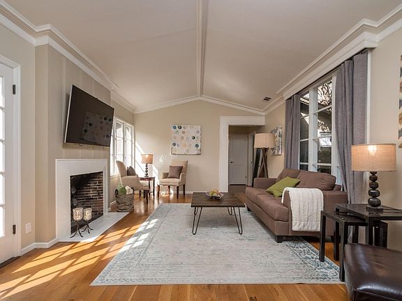 This classic one story home built circa 1935 offers the amenities of today while maintaining the architectural detail of years past. A carefully thought out, landscaped garden with a beautifully aged cobblestone walkway leads to protected private courtyard which graces the front entrances. The hub of the home is the gourmet kitchen, which was designed to meet the needs of today's family and features a large center island with beautiful granite countertops, allowing for family gatherings and entertaining. On one side of the home, there are two spacious bedrooms which share a recently updated bathroom. On the other side of the home, there is a bedroom suite with a luxurious bathroom tiled in a Carrara marble. For casual everyday living there is a bright and spacious living room with vaulted ceilings, accented crown moldings and beautiful hardwood floors throughout the home. You will also find an elegant fireplace with French doors on one side leading to the private courtyard patio.