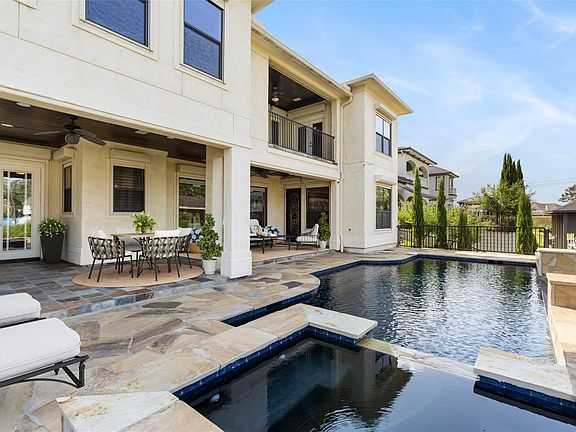 Experience waterfront living in this stunning 5-bedroom home featuring first floor living in a controlled access community. Standouts include a private elevator, full house generator and storm shutters to ensure convenience and comfort. The open design on the first floor includes the formal Living and Dining Rooms, Kitchen and Breakfast Rooms, Butler's Pantry, Wet Bar and a Study, covered patio, infinity edge pool and summer kitchen for seamless indoor-outdoor living. Enjoy a private boat slip on a canal opening to Clear Lake for endless water fun. Upstairs offers 5 bedrooms (including the Primary suite) with en suite or Hollywood baths, the Game Room and balcony with serene views and the Laundry Room. Custom tub/shower glass enclosures and striking custom glass exterior doors with wrought iron detailing are just a few of the design features that elevate the home's refined detail. Gated Marina del Sol offers peace of mind plus accessibility to restaurants and shopping opportunities.