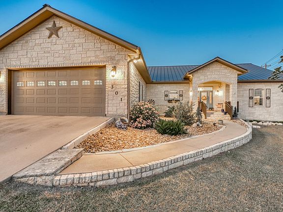 Charming Texas white stone home on oversized corner lot in Marble Falls! Discover the beauty of this exquisite early Texas white stone home perfectly situated on a spacious corner lot in the vibrant heart of Marble Falls. Imagine unwinding on your front porch rocking chairs, as you soak in the breathtaking Hill Country sunsets. This meticulously maintained 3-bedroom, 2.5-bath residence boasts an inviting open floor plan, featuring a generous living, dining, and kitchen area adorned with a cozy wood-burning fireplace and electric logs for those chilly evenings. The well-appointed kitchen comes equipped with several new appliances and the refrigerator is included for your convenience. Step outside to the expansive covered back porch, where you can savor an adult beverage while enjoying the soothing hot tub or taking a dip in the new heated and cooled above-ground stainless 15-foot pool-perfect for year-round relaxation. The spacious backyard is ideal for family gatherings and outdoor fun. Additional highlights include a 450 sq ft metal building with a cement floor, providing ample storage for all your yard equipment and a John Deer riding lawn mower, which the seller is generously leaving behind for your mowing ease. This home offers the perfect blend of downtown convenience and country privacy, allowing you to enjoy all the best amenities Marble Falls has to offer with no HOA restrictions. Don't miss your chance to make this stunning property your own!!