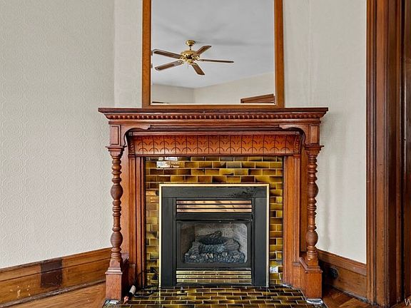 Beautiful electric fireplaceAbundant natural lightIntricate original woodworkElegant woodworkInviting front porch