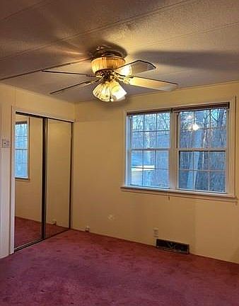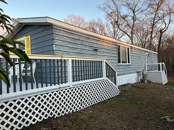 Immaculate unit at Dadson Park in Tiverton. Recent upgrades include paint, roof, heating system, and oil tank. This is a perfect alternative to rent! Move in ready! Off street parking for 2 cars. Large shed. Unit backs up to woods; very private! (Land lease fee currently $280 per month.)