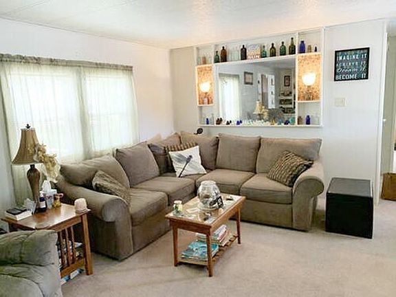 Nestled in Dadson Estates, this 3 bedroom home would be a great condo alternative. Large living room with built-in bookcases. 2 bedrooms have their own full baths. The screened patio is a great spot for summer days/nights. Kitchen appliances and washer dryer to pass with sale. 2 miles from Grinnell's Beach, 16 miles to Newport. Easy highway access. Seller will consider all offers. Pets welcome with breed restrictions. NEEDS EXTERIOR TLC.