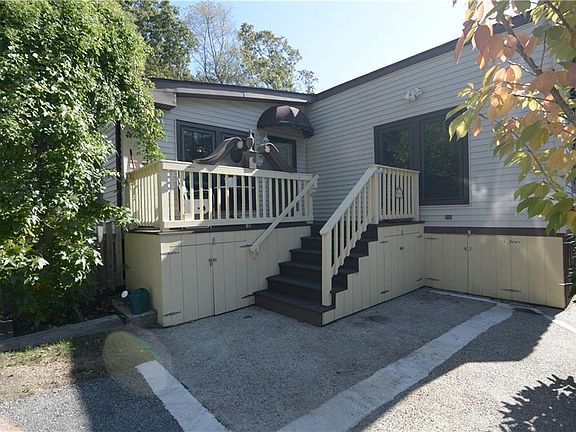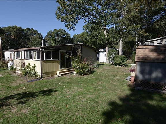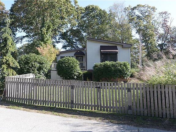One-level living! Enjoy a peaceful setting on the newer side of Dadson Estates Mobile Home Association of Tiverton, RI. Meticulously maintained, this double-wide with a bump-out was built in 1980. Hatches protect the underside, provide auxiliary Storage & access to the clean Foundation. A 10,000 s.f. lot includes a 12'x12' Shed, fencing, mature plantings, yard, a cul-de-sac road. Parking for 2, plus! The lot is owned by the Association, providing water, sewer & road maintenance. Association Fees assessed per Bylaws, Rules & Regulations, and an Association Application. 2017 replacements included large windows, the roof, and a new Master Shower. Keep cool with cross breezes, ceiling fans, AC, & two Decks. The spacious Living Room has a center fireplace under a cathedral ceiling, low pile carpet, & nice window blinds, as are throughout the home. It flows to the Kitchen and Dining areas, where there is good storage, an eating peninsula, South window & door to the covered Porch. Admire the custom built-in on the Dining wall, & the spaciousness. Step into the large adjacent sitting room & office Den, which leads to a private back Yard, terrific for its natural light & plantings. The Master Bedroom & Bath is at one end, the second Bed & Full Bath are tucked at the other, with good Closets & walk-in Showers. Laundry hook-ups & Utilities are convenient within the home. This is in full working order and ready to greet the next owner!