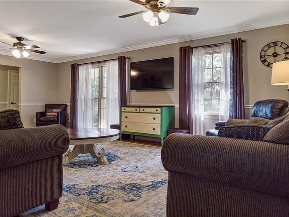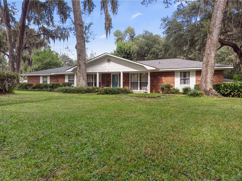 Price reduction! Lovely 4BR/2BA brick ranch situated on 2 parcels amidst the most gorgeous oaks and serene setting in this community along the Satilla River. Recently remodeled throughout, this gem is a sight to see. Beautiful brick floor entry leads to a large living room with wood flooring and floor to ceiling windows. Spacious bedrooms, master bath with tiled walk in shower and hall bath w/tub shower combo. Great tiled kitchen, white cabinetry, stainless appliances, granite countertops and breakfast bar w/pendant lighting overlook an amazing dining area or place to hangout! Attached 2 car garage, fenced backyard w/patio and 12x20 wooden storage bldg complete with electricity. Plenty of outdoor space for entertaining. Roof, HVAC, water heater and fencing approx 3 years old. No flood insurance required X Zone. All appliances in home remain! Easy access to interstate and close to schools, shopping and Jekyll Island for some fun in the sun! Call to schedule your showing!