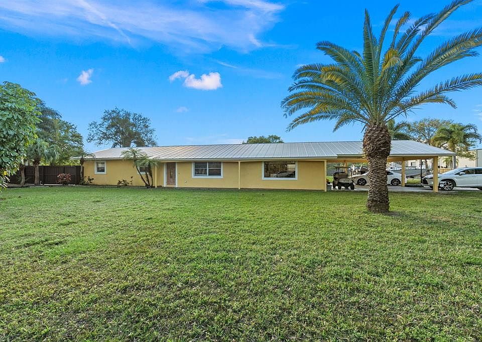 West Fort Pierce- Rarely Available Home on 3.26 +/- Acres, Desirable location, Minutes to I-95, Easy access to Florida's Turnpike. 3 Bed, 2 Bath Home features Concrete Block construction, Metal Roof, Newer (2022) AC & Water System, Generous Kitchen, Stainless steel appliances, Expansive family room with endless possibilities- Easily convert into a 4th bedroom, Office, Guest quarters. Den currently utilized as add. bedroom. Enjoy your Spacious back yard, screened lanai and private pool. Property offers plenty of room for additional buildings, barns, R/V and boat parking. Explore the variety of uses with AG-1 zoning. Agricultural business potential! Adorned with a variety of Mature Oaks and Palm trees. True Gem- One of the very few homes on Acreage Available in St Lucie County!