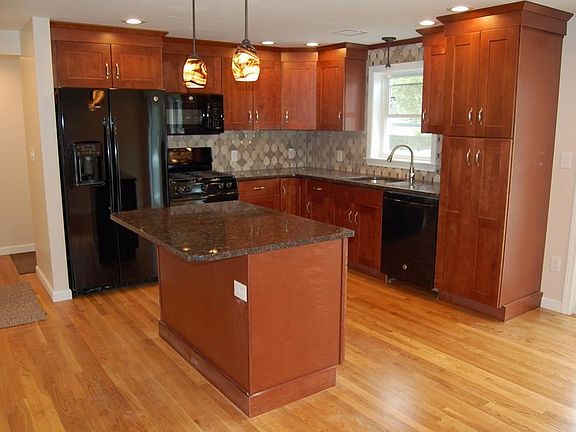 Totally renovated single family raised ranch is all new inside! This immaculate home features 2000sq/ft of living space! 4 bedrooms, 2 full baths, all new fully applianced kitchen featuring granite counters, refrigerator, dishwasher, gas range, garbage disposal, microwave and cherry cabinets! Open floor plan to living room with fireplace. Hardwood floors throughout the main floor, finished lower level with full bath and washer/dryer hookups, master suite or guest room. All new high efficient gas heating system and on demand water. Central heat and air conditioning. The house has been fully insulated. Two car garage is attached. Flat level fenced in yard with brand new composite deck that's perfect for relaxing and entertaining. Truly a must see! Sorry, no pets!