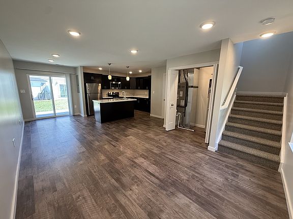 This 2 bedroom and 1.5 bathroom home showcases an open concept living area, with a fully equipped kitchen that features a pantry and stainless steel appliances. Throughout the home, the floor is laid with luxury vinyl wood plank flooring. The home has central heating and air conditioning, a washer and dryer, ample closet space and storage, and window blinds.