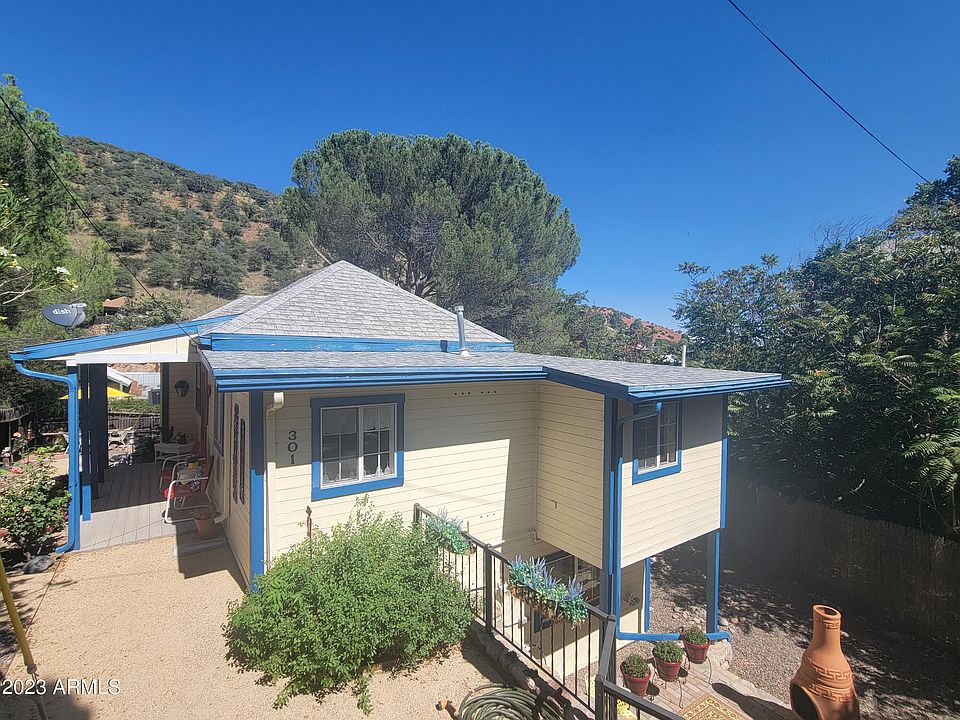 Private setting in Old Bisbee, walking distance to restaurants, mountain view, great open air space. 2 bedroom 2 bath. Upstairs, Master bedroom and remodeled bath. Deck is upstairs with exit doors off living room and Master bedroom. Downstairs, living space, 1 bedroom , remodeled bathroom and laundry area. An exit door out the bedroom and living room. Easy street parking.