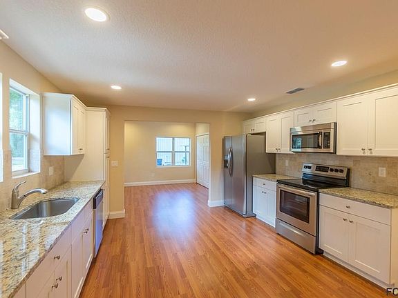 TOTALLY RENOVATED TOP TO BOTTOM! 2 BEDROOM 2 BATH WITH MOTHER IN LAW SUITE AND POOL! Both homes have been freshly painted inside and out, new fans and fixtures, new flooring, plumbing, insulation, doors and trim. Both kitchens have been updated with new white cabinets, new granite countertops, tiled backsplash and stainless steel appliances. Reburbished authentic 1950's wood floors in the family room main house for that classic touch! All baths have also been update with new cabinets, granite vanities and tile. New A/C Unit and duct in main house, Mitsubishi split units in cabin, new hot water heater and new siding. Main house is 1430 Sq ft with 2 bds/2 bath and Mother in Law suite is 1 bd/1 ba 536 Sq. Rare find for investment property, or live on one side and rent the other or use as a Mother-in-law suite or multi generational home. Enjoy the pool and large fenced yard with plenty of room for your recreational vehicles and the added benefit of the relaxed Bunnell regulations.