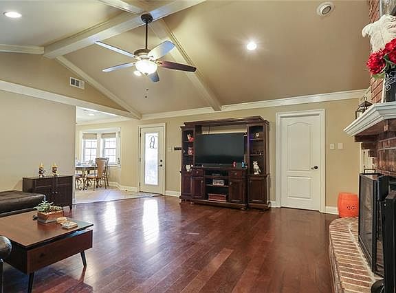 Beautifully renovated home located on tree lined streets on corner lot that backs up to woods. 3 nice size bedrooms. Large den with Wood burning fireplace. Smart home/Climate Controlled Nest with ADT Security System, Large Kitchen with Granite Counters, Custom Cabinets, Stainless Steel Appliances, Large Formal Dining Room being used as work our room. 2 Car Attached Garage with Covered Carport and Separate Garage with 1/2 Bath. New Fence around Rear Yard. Nice and Secluced on Woods.