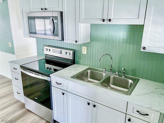 Spacious 2 bedroom, 2 bath home in the Thunderbird, a 55+ manufactured community located off San Carlos Blvd, close to FMB and Sanibel Island. Beautiful and affordable SW Florida winter retreat with low HOA fees close to everything fun in the sun! Don't miss your opportunity to purchase a well taken care of remodeled home in this close knit community. New membrane roof over in 2020, enclosed front porch in 2017, new windows and doors in 2016. Kitchen and bathrooms have all new cabinets, new appliances, new HVAC, shower enclosures and flooring throughout in 2023. All reasonable offers considered.