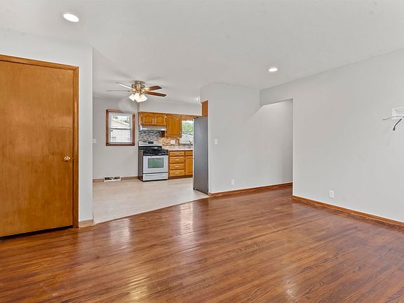 Clean updated ranch home with 4 bedroom, 1 bath! Living room with hardwood floors open to updated kitchen with new countertops and backsplash. 3 bedrooms on the main floor all with hardwood floors and new windows. Updated full bath with newer vanity and tile floor. Lower level with large family room and 4th bedroom with egress window. Plenty of storage in lower level as well. Lower level is stubbed in for a 2nd bathroom. Home has all updated vinyl windows, new water heater, and new furnace and A/C in 2022. Large insulated 2 stall garage!! Fenced in backyard with large deck and huge shed!!