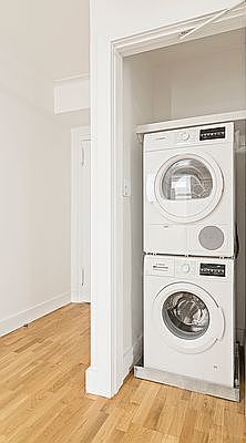 Renovated two-bedroom apartment in a doorman building with elevator and laundry in Gramercy Park. Apartment features - in unit laundry - hardwood flooring - dishwasher - microwave Building features - onsite laundry - elevator - concierge - pets are allowed - fitness centre Photos are of a different apartment with similar finishes.