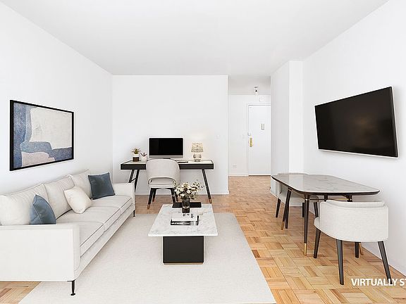 The Regency East is a guarantor, pet, and pied-a-terre friendly co-op that offers a doorman, live-in resident manager, central laundry room, and an on-site parking garage. 75% financing and subletting are allowed.