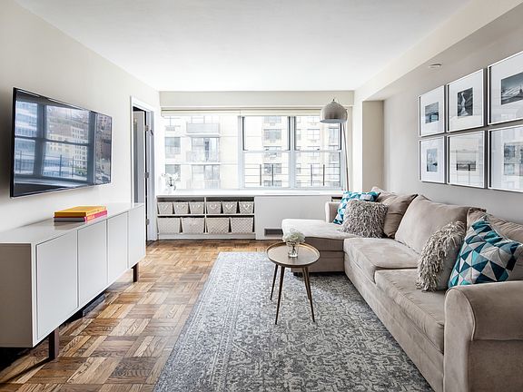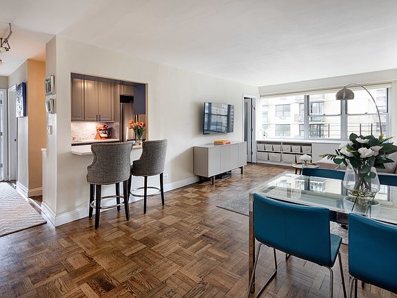 FULLY RENOVATED, HIGH FLOOR & LOW MONTHLIES!* Welcome home to Residence 10-F at The Wilshire (301 East 75th St), a beautifully renovated, south-facing and spacious corner CNV-2 Bedroom / 1 Bathroom home featuring an open kitchen and large decorator closets including a Walk-in! A wall of windows spans the entire width of each room, allowing one to enjoy the southern exposure, abundance of light, and open views from both bedrooms and the living/dining area. The spacious living room and dining area are seamless in their integration with the open kitchen to create the perfect setting for entertaining large or small gatherings of family and friends. The kitchen and separate bar area have been tastefully renovated with custom cabinets, quartz countertops, new stainless steel appliances (including dishwasher and wine cooler) and custom lighting. The oversized master bedroom includes a large walk-in closet, custom lighting and built-in cabinetry. The 2nd bedroom with dedicated HVAC and large windows is perfect for a nursery, guest room and/or home office. Pristine and fully tiled bathroom with large east-facing window. Additional features include custom window treatments and lighting, built-in cabinetry in all rooms, and the ability to run AC all throughout the year. The Wilshire is a beautifully well-kept 24hr doorman building with a newly renovated lobby, laundry facilities, fitness room, planted roof deck, free storage, free bike parking, and a garage. Great restaurants, shopping, supermarkets, fitness, and everything you could want or need right outside your door, including the Second Avenue Subway! Don't miss the opportunity to purchase a great apartment in this prime UES location. Sorry, no pied-a-terres or subletting. The pet policy allows for two cats, no dogs. Guarantors, co-purchasing and gifting allowed.